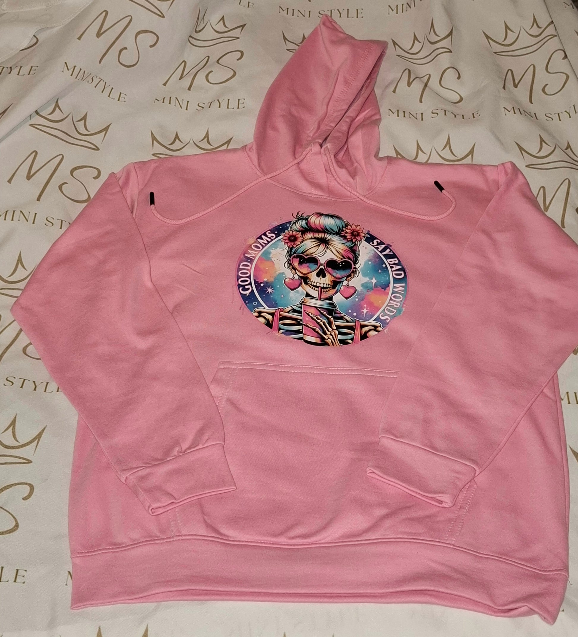 Printed good moms say bad words hoodie.