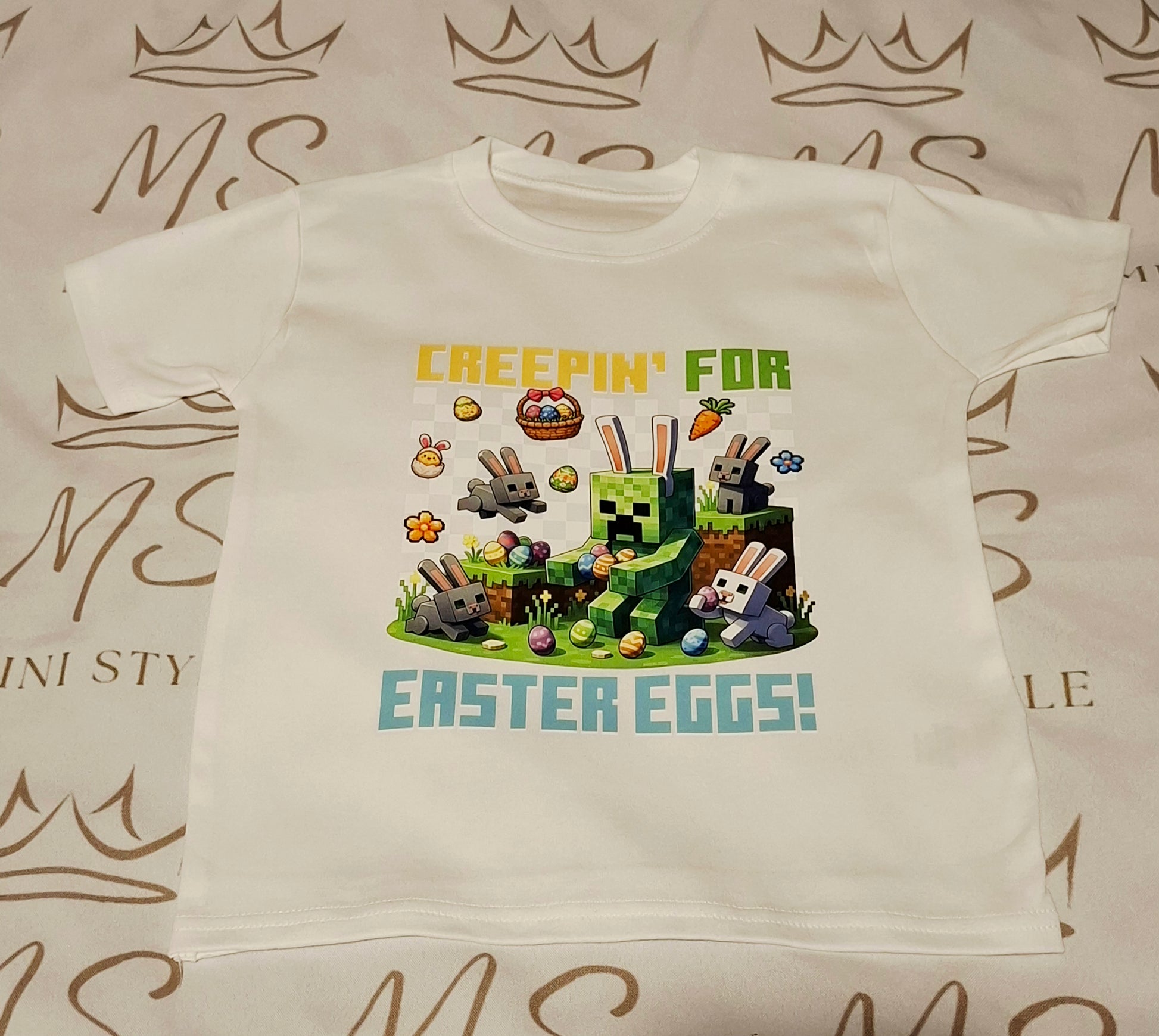 Soft white tshirt with easter printed design.